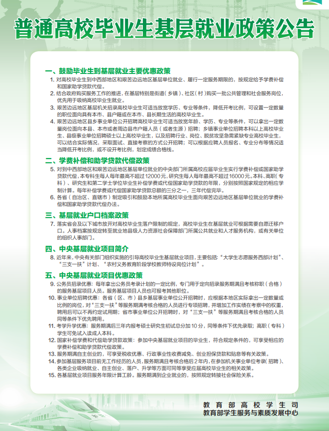 普通高校毕业生基层就业政策公告