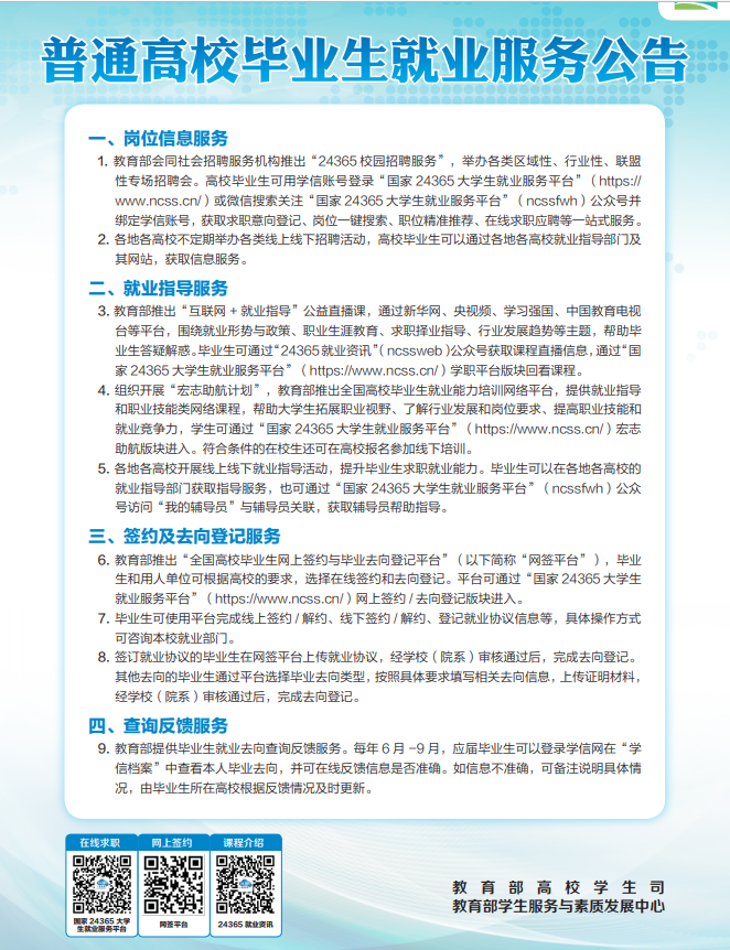 普通高校毕业生就业服务公告